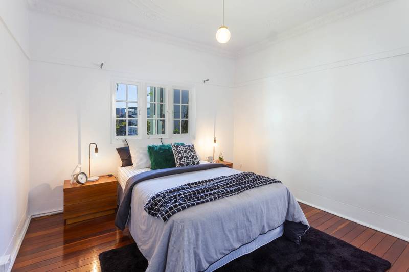 Positioned on the top floor, with two generous sized bedrooms and a sunroom facing north, this spacious 100sqm apartment is enriched with polished timber floors, high ornate plaster work ceilings, patterned cornices and casement windows.