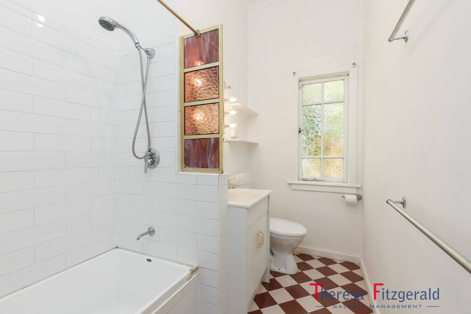 .  Checkerboard tiling in bathroom